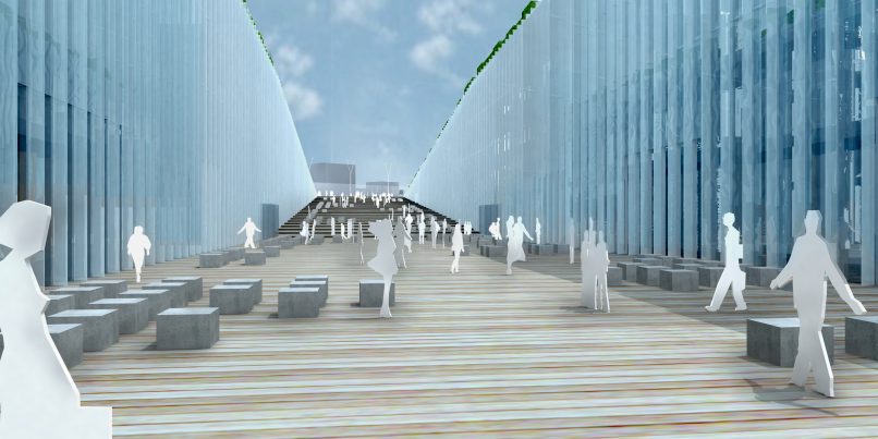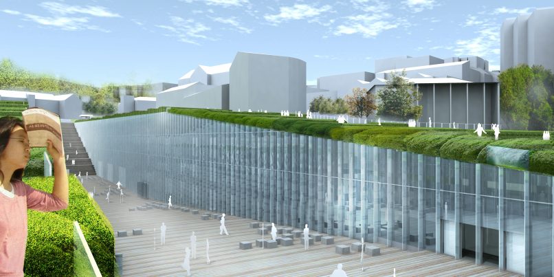 Die große Besonderheit des Projektes besteht in seinem Konzept der “Negativen Architektur”. In einem stark verdichteten Gebiet gelegen, wurde die Konstruktion unterirdisch verlegt. Somit konnte öffentlicher Raum geschaffen werden in Form eines Gartens. Die Gegebenheiten des Grundstückes wurden hierbei berücksichtigt und ausgenutzt: Ein grosser Riss in Form einer Strasse, sodass die Seitenwände der Hänge als Fassade des neuen Universitätsgebäudes dienen konnten. Die Dächer des Gebäudes und die umliegenden Räume gehen in einen Gartenbereich über, in dem Sportgeräte installiert sind.