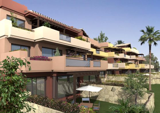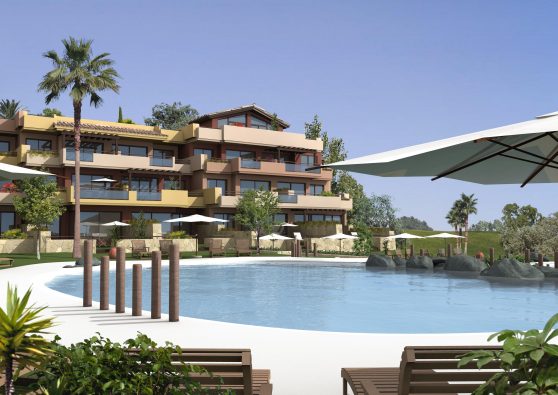 Jede Wohnanlage besteht aus einem zentralen Park mit Schwimmbad. Die Wohnblöcke organisieren sich um diesen zentralen Raum.