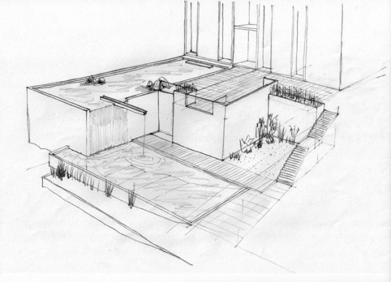 Eine akademische Aufgabenstellung, welches sich um die Schaffung eines privaten Gartens dreht, der die gegenwärtige Hausarchitektur verbessert und die Geländegeographie nutzt.